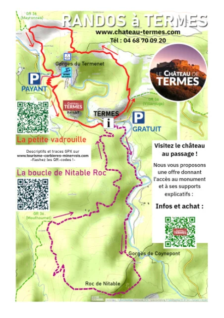 Issu d'une petite collection de boucles familialles, voici une déclinaison pour la commune de Termes. En résumé, cette boucle permet de faire le tour à la fois des Gorges du Termenet et du château de Termes !