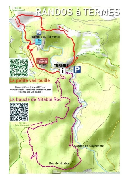 Ces balades, au départ du village de Termes, sont greffées sur le GR 36. Il vous est possible de faire l'une, ou l'autre, voire les deux.